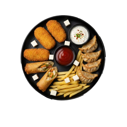Perfect for paneer lovers: Paneer Fried (2 pcs) + Paneer Kurkure (2 pcs) + Paneer Spring Roll + French Fries.